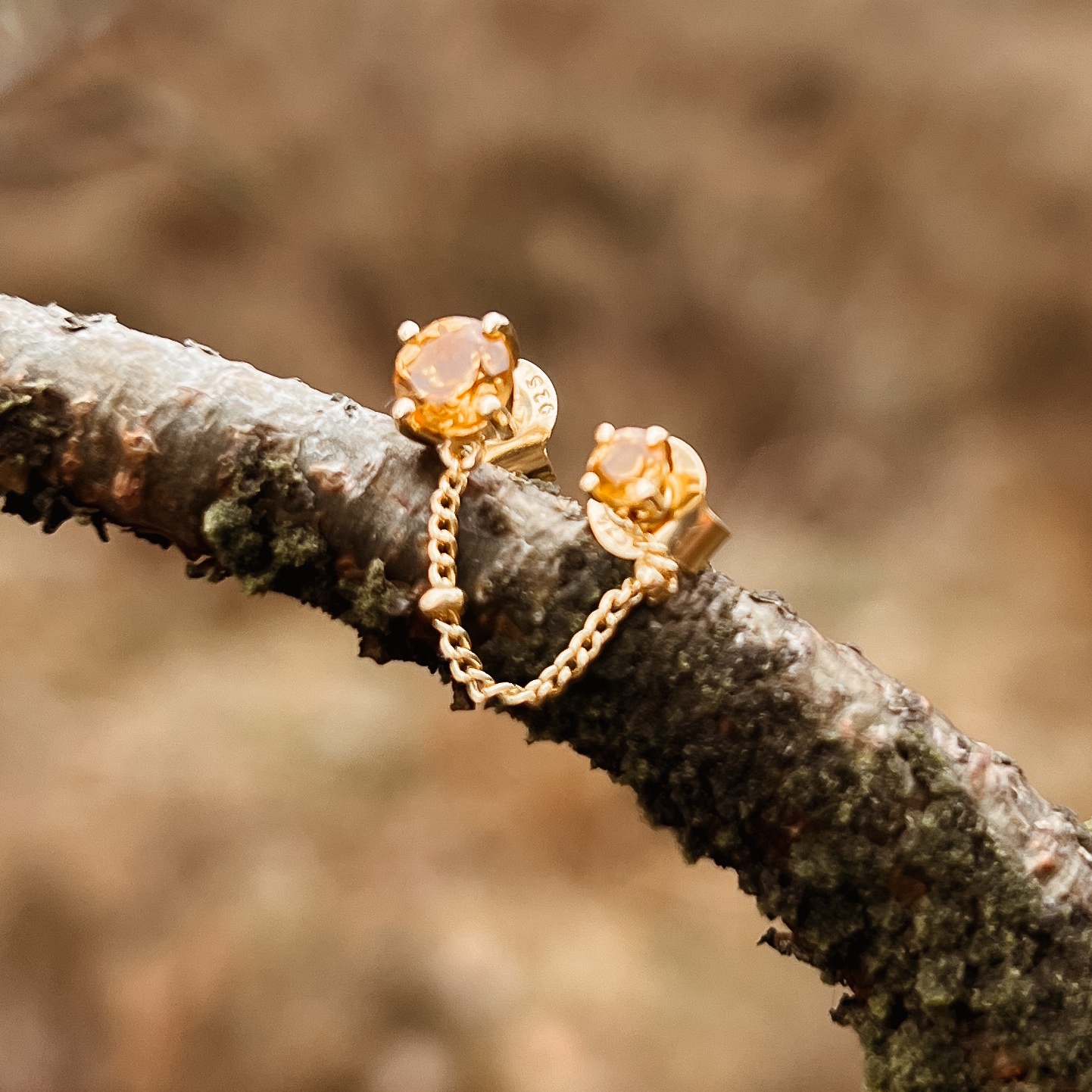 Een gouden oorbel met Citrien — symbool voor vriendschap, licht en verbinding. Verschillend, maar samen één geheel.