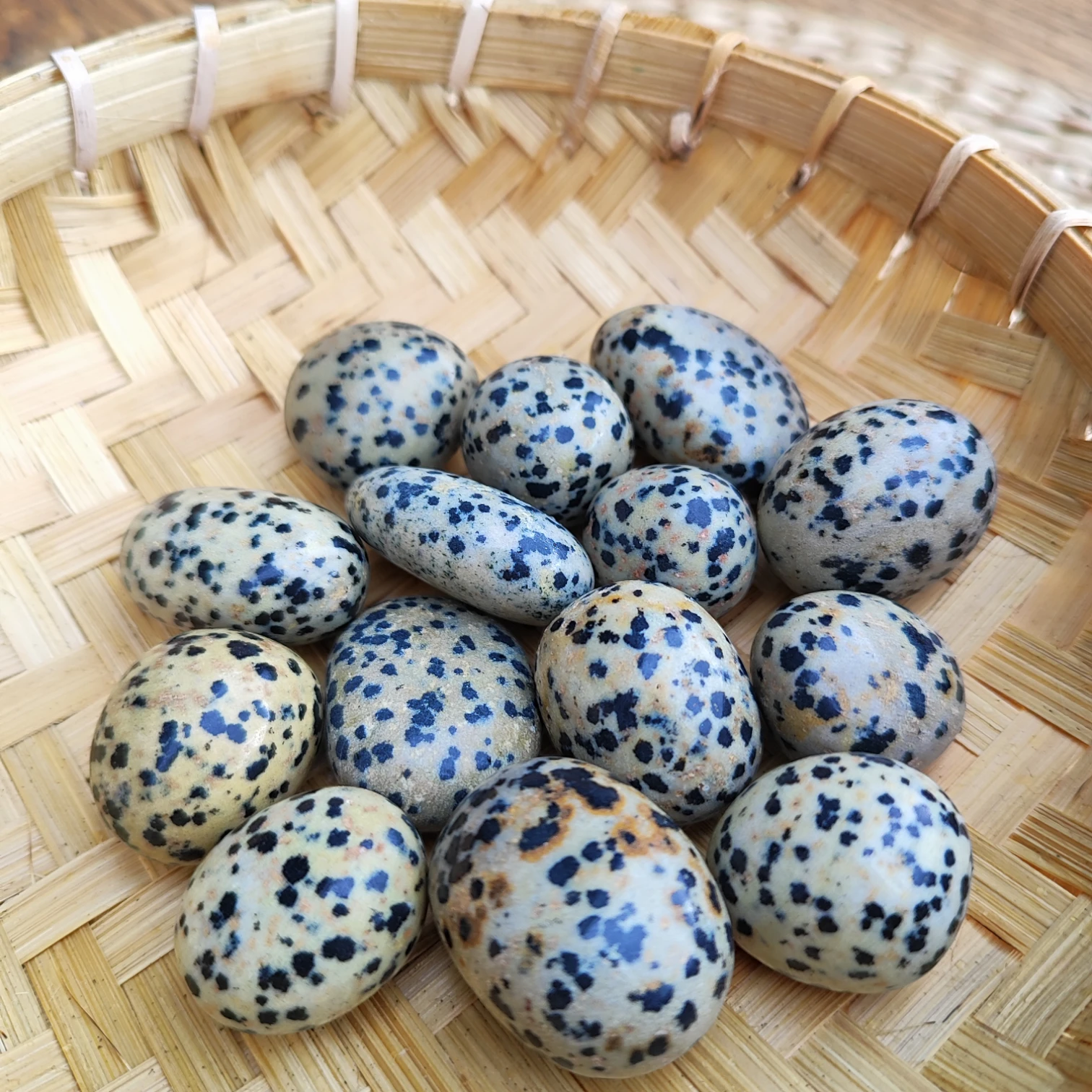 Breng speelsheid, balans en kracht in je leven met de Dalmatiër Jaspis knuffelsteen! Deze beschermende en aardende steen helpt je je doelen te bereiken en negatieve energie los te laten. 🌿✨