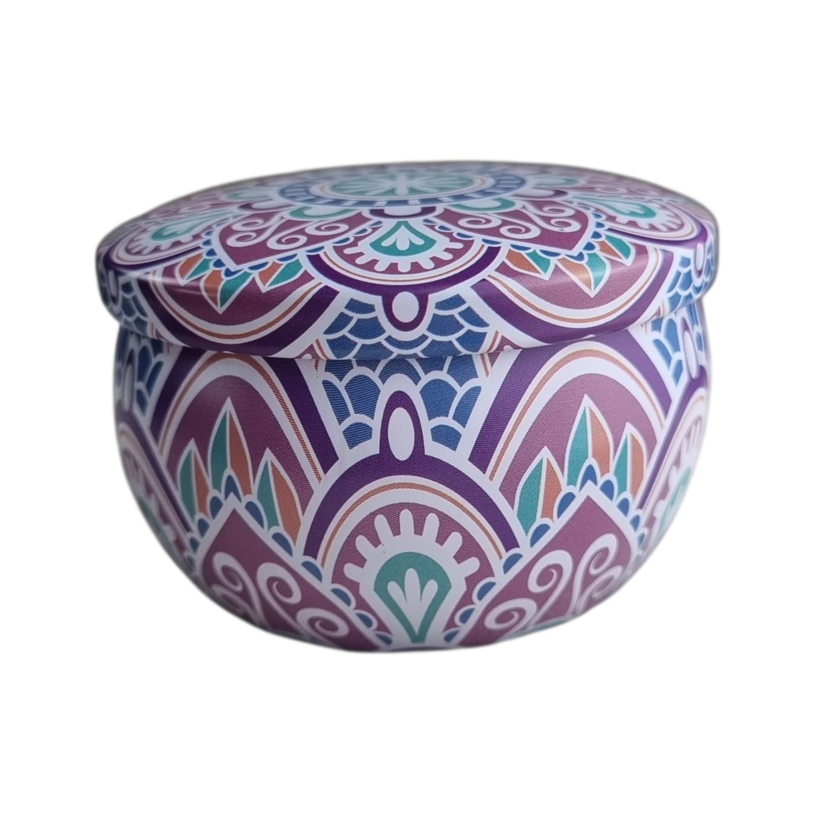 Met zijn elegante kleurenmix van paars, turquoise en zachtgroen straalt dit mandala-potje sereniteit en harmonie uit. Het verfijnde patroon geeft een kalme en stijlvolle uitstraling, waardoor het een prachtig accent vormt op je bureau, nachtkastje of in de woonkamer.
