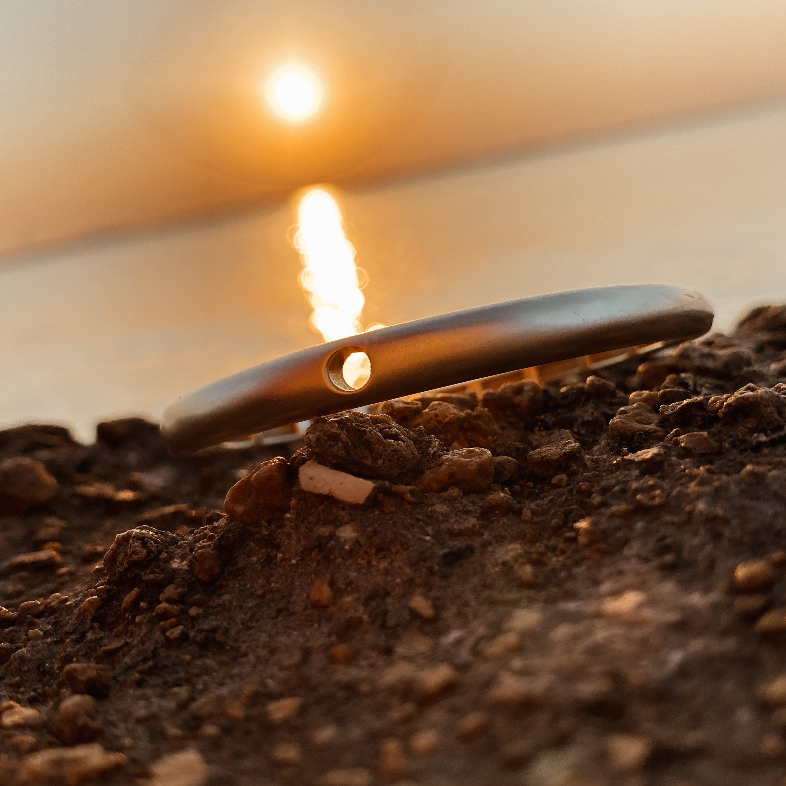 Deze tijdloze armband is ontworpen om jou elke dag te herinneren aan wat er al in je leeft: rust, kracht en balans. Het kleine ronde openingetje in het midden symboliseert ademruimte, een moment van focus in het ritme van de dag.
