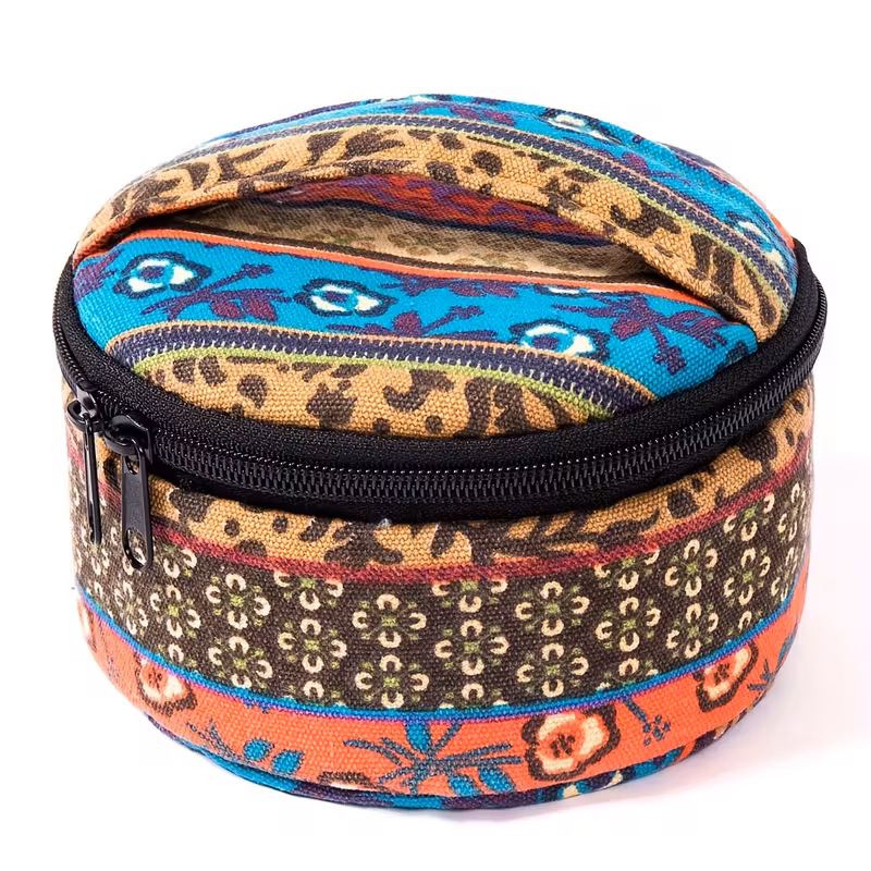 De kleurrijke print geeft het tasje een speelse en warme uitstraling. Het is zo’n handig item dat je er bijna vanzelf blij van wordt. Ideaal voor thuis, onderweg of om je favoriete oliën mee te nemen naar werk, vakantie of een fijn ritueelmomentje. De print en kleurstelling kunnen subtiel afwijken van de foto’s, omdat elk tasje nét even uniek is.