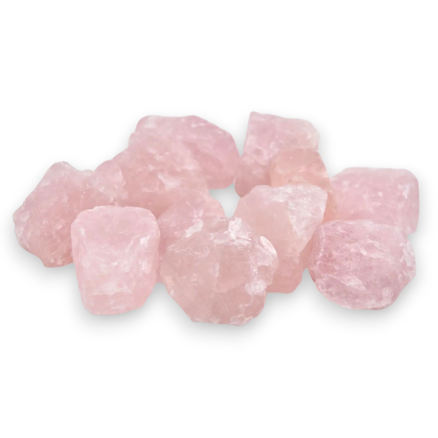 De brokken zijn onbewerkt en juist daardoor heel puur. Je ziet de natuurlijke vormen, de breuklijnen en de zachte roze kleur. Geen twee stukken zijn hetzelfde.